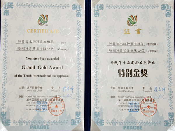 “神農(nóng)有機茶”榮獲第十屆國際名茶評比“特別金獎”