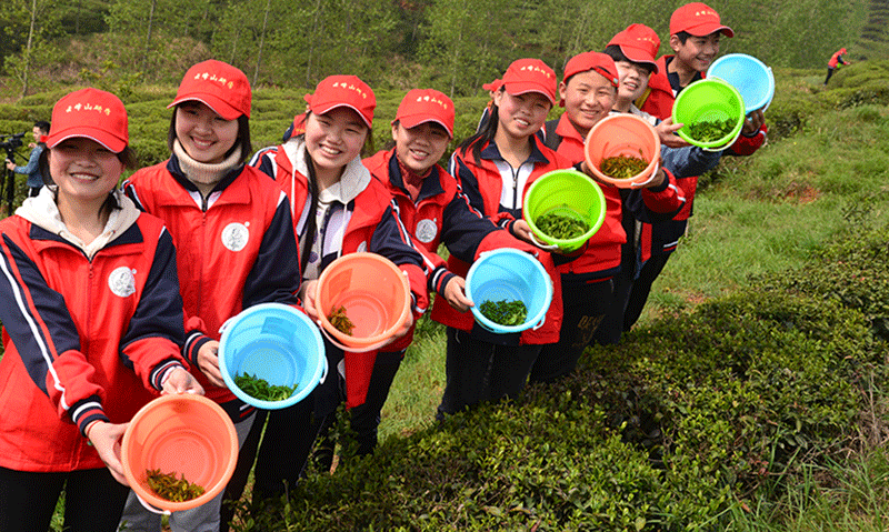4月11日,在新建的游客中心即將開業(yè)之際,云峰山萬畝茶園風景區(qū)迎來了今年第一個上千人的研學旅行團隊。