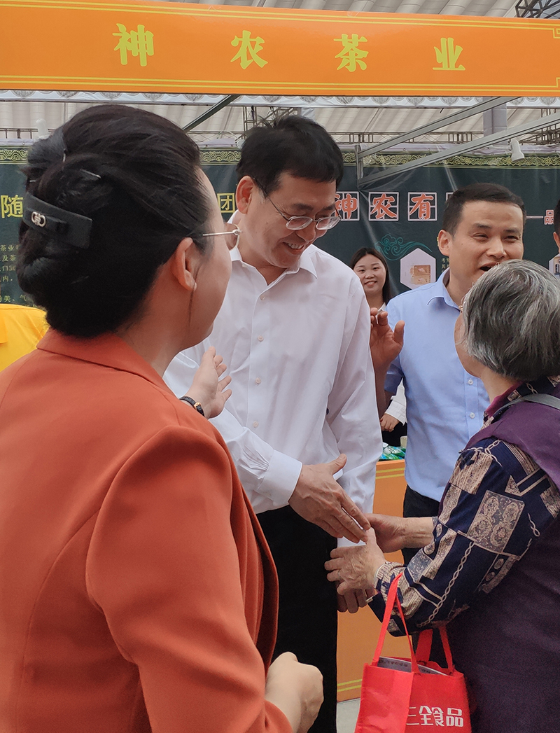 尋根節(jié)期間市委書記陳端峰、市長(zhǎng)郭永紅來(lái)到神農(nóng)茶業(yè)集團(tuán)展位與消費(fèi)者親切交談。