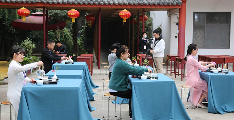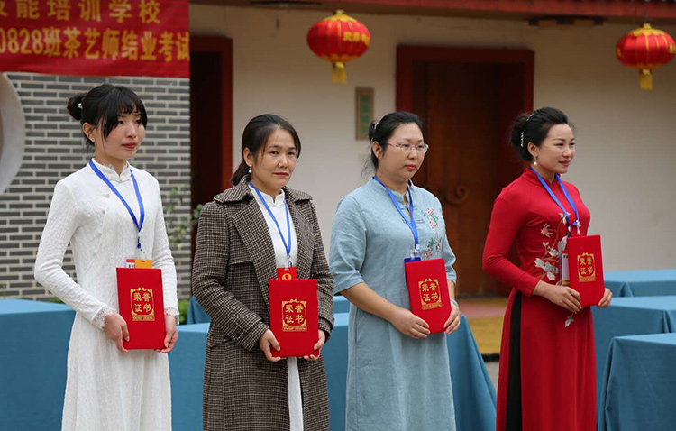 以賽代考期間,參賽表演茶藝的本屆學(xué)員全部過關(guān),并評(píng)出周湘平、喻光萍、王紅梅、包云嬌四名優(yōu)秀班主部和周曉平、黃思誠、甘春芬、張瑋四名優(yōu)秀學(xué)員;市人社局趙局長在賽前講話,教師代表王老師寄語,一干學(xué)員和友人在賽藝間隙也載歌載舞,一展才藝。整個(gè)賽場(chǎng)氛圍活躍而又不失賽考的莊重另附典雅。