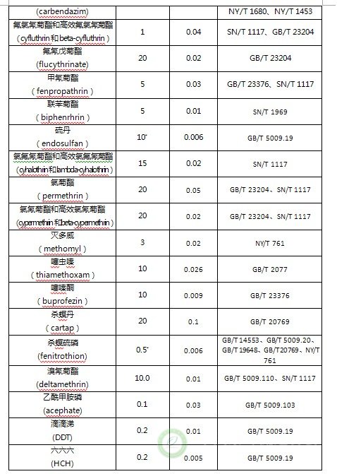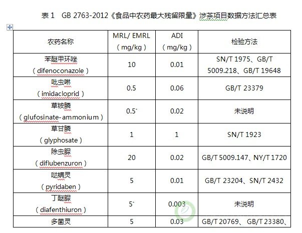 表1GB2763-2012《食品中農(nóng)藥最大殘留限量》涉茶項目數(shù)據(jù)方法匯總表