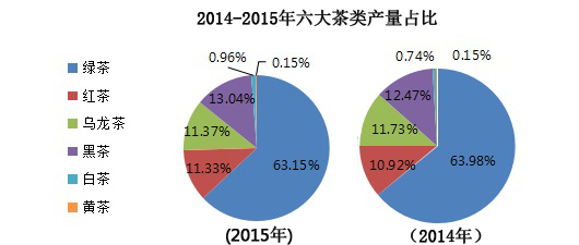 根據(jù)綜合分析,2015年全國茶葉生產(chǎn)繼續(xù)保持穩(wěn)定,茶園面積增幅下降,產(chǎn)量繼續(xù)增加,產(chǎn)品結構調(diào)整,提質增效明顯。