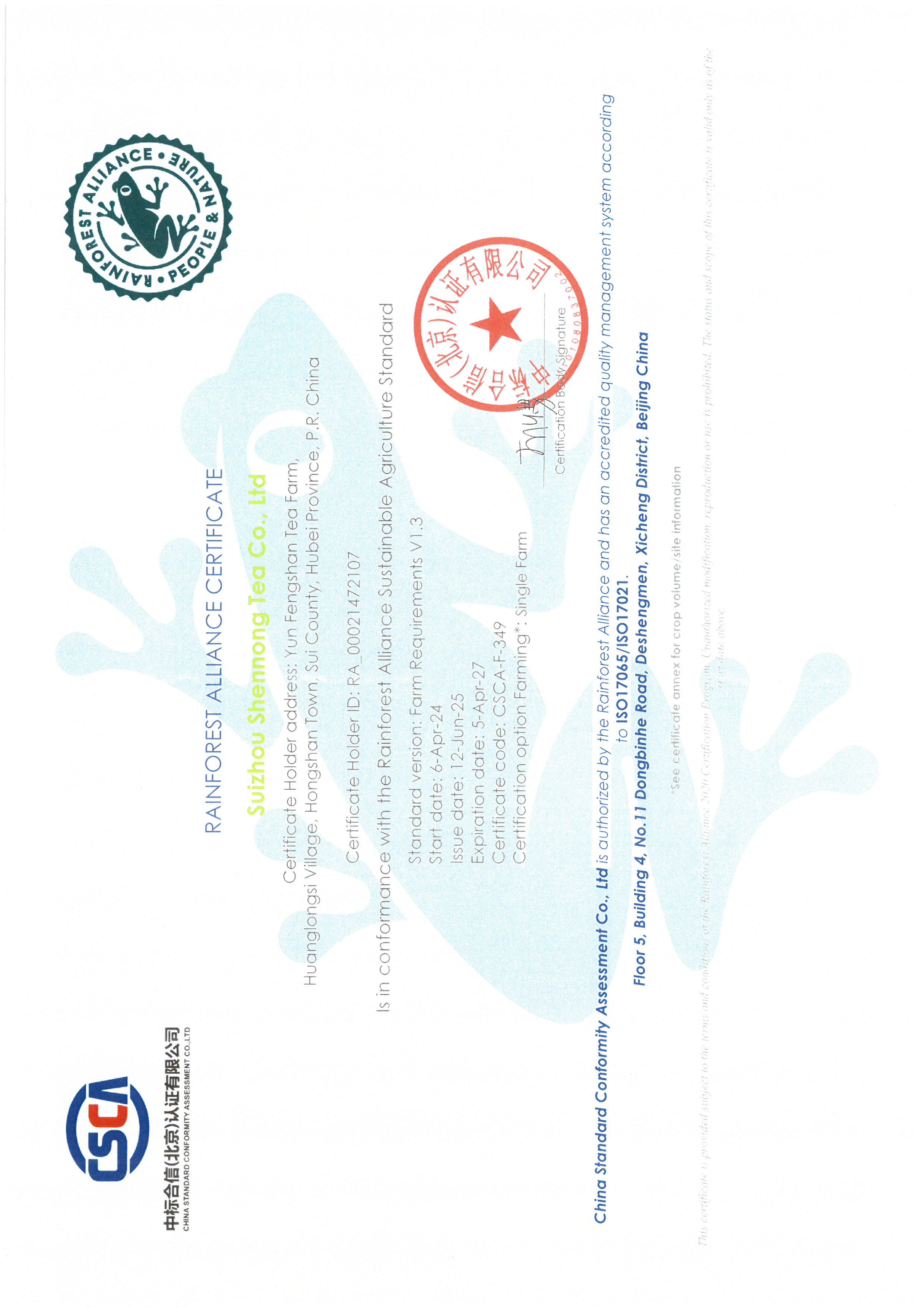 雨林聯(lián)盟認(rèn)證
