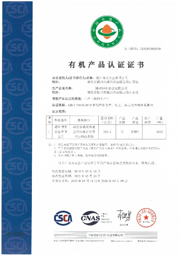 國標(biāo)有機(jī)認(rèn)證證書